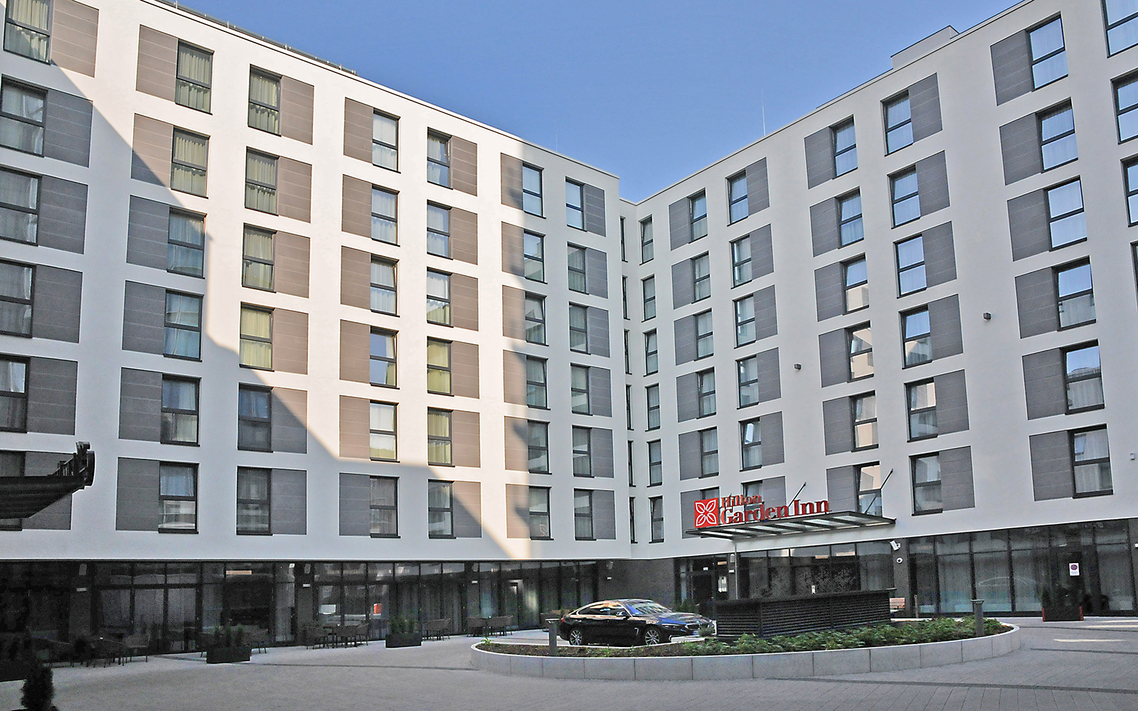 Die verkehrstechnische Erschließung des Hotelkomplexes erfolgt über die Landsberger Straße vorbei am Central Tower. Der durch den L-förmigen Baukörper ausgebildete und klar strukturierte Innenhof dient dabei beiden Hotels als Vorfahrt.