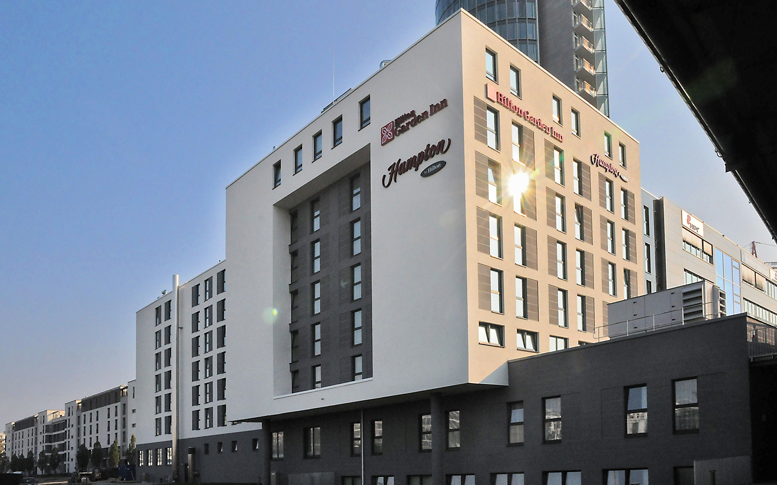 Der geplante Neubau, bestehend aus einem Dreisterne- und Viersternehotel mit insgesamt 352 Gästezimmern, verfügt über sieben Vollgeschosse inklusive Tiefgarage.