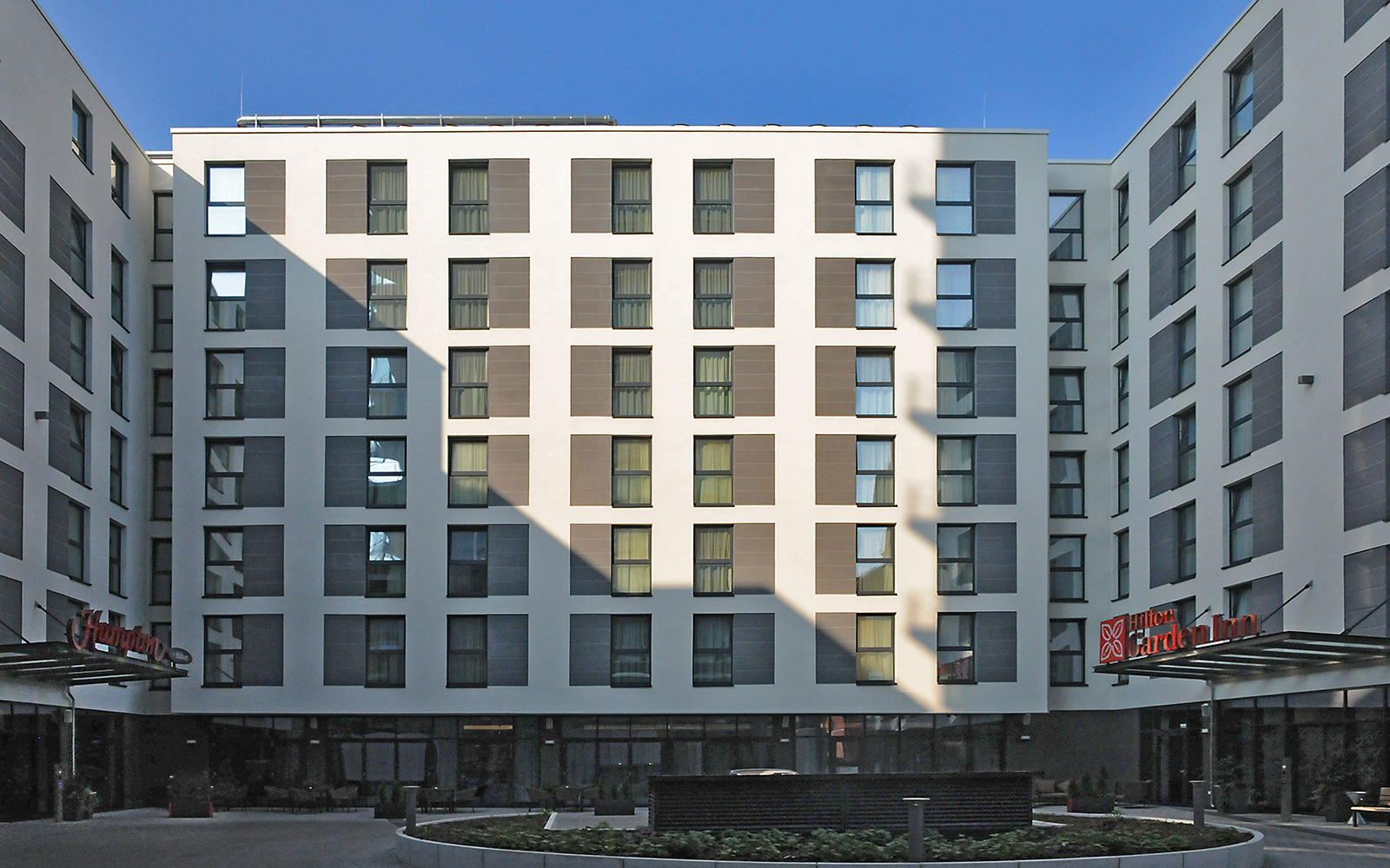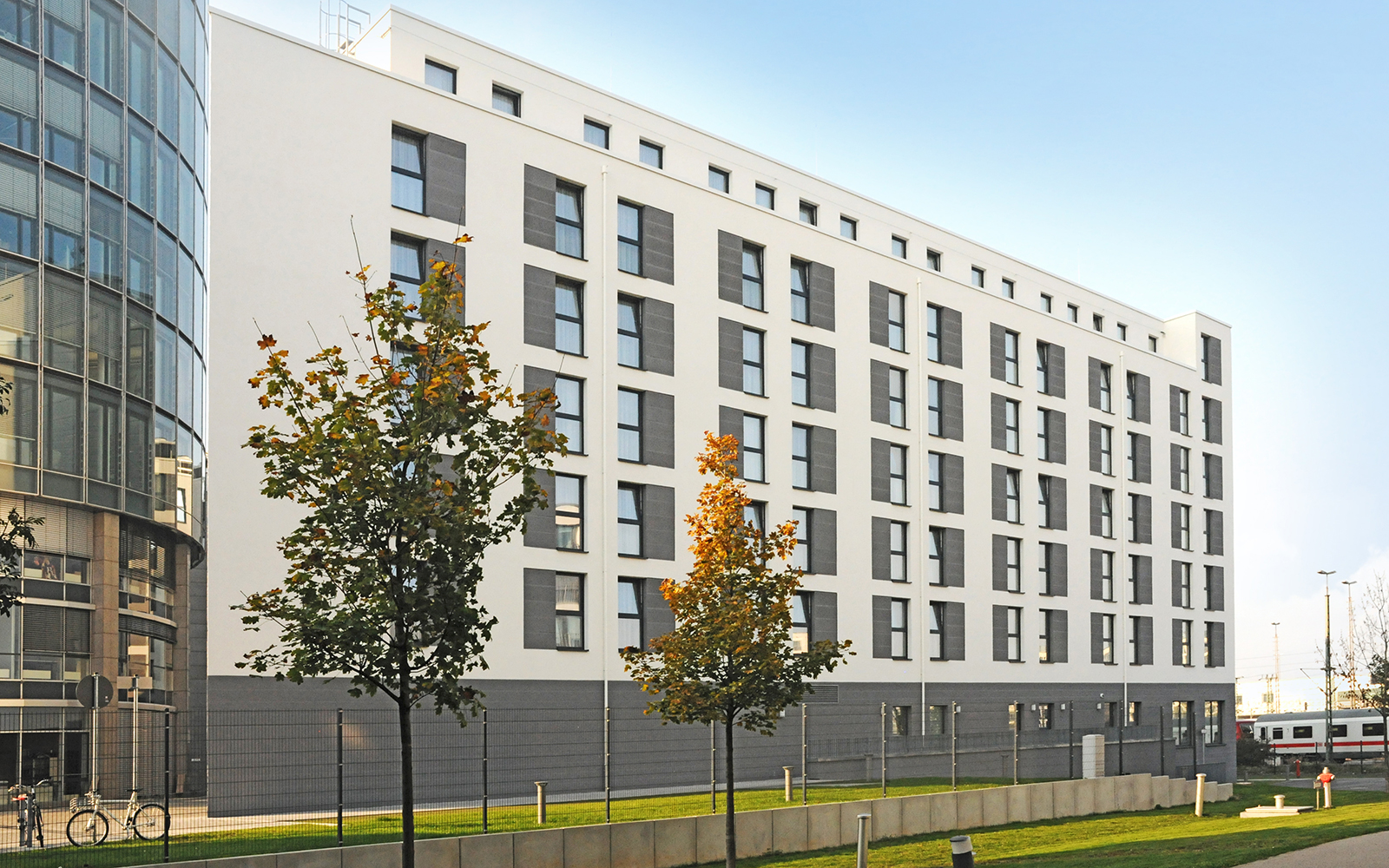 Der Hotelneubau versteht sich als städtebauliches Bindeglied zwischen der Wohnbebauung Donnersberger Höfe im Osten und dem ehemaligen Hauptzollamt im Westen. Mit der Übernahme der Lochfassaden und Putzstrukturen erfolgt eine Arrondierung des vorgegebenen Grundmusters.