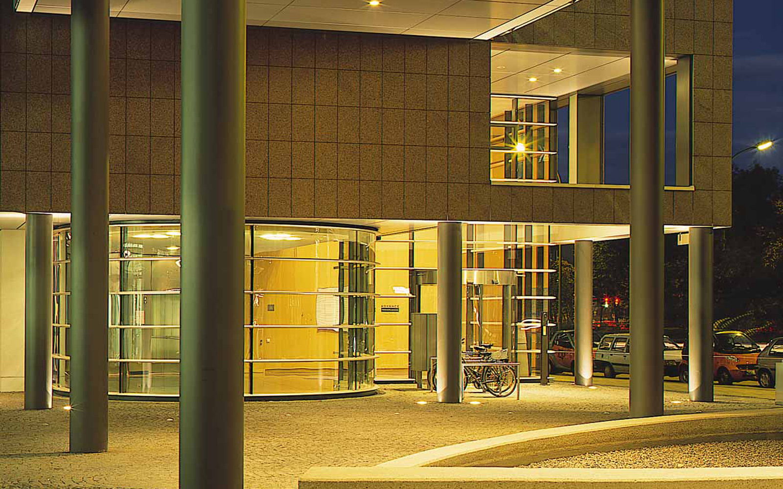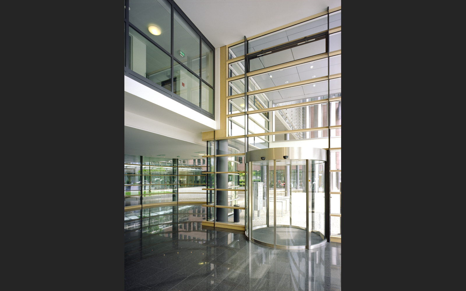 At the links between the outside and the inside there are several prominent lobbies which open up the depth of the building with over 27.000 m² BGF: they are assigned to the inside, designed softly with extensive wood panels and hardly any colour, interior design.